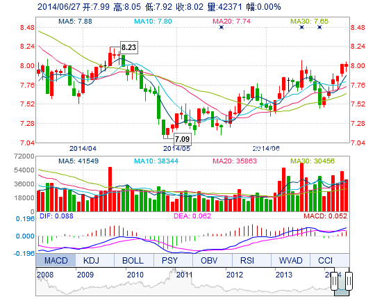 | 今 开: | 7.99 | 成交量: | 4.24万手 | 振 幅: | 1.62% |