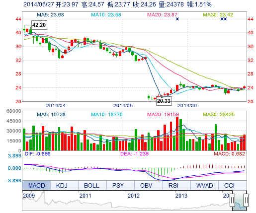 | 今 开: | 23.97 | 成交量: | 2.44万手 | 振 幅: | 3.35% |