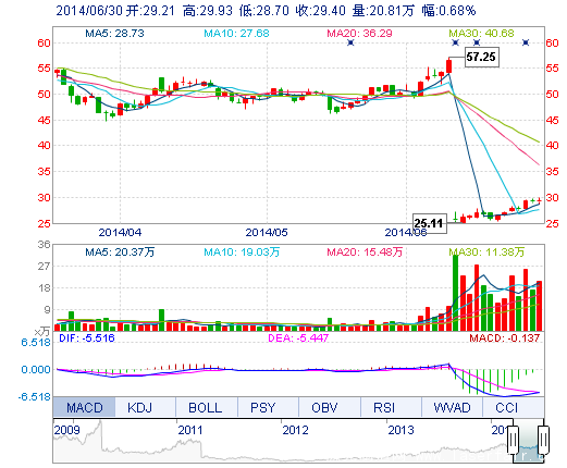 今开: 29.21 成交量: 20.81万手 振幅: 4.21% 最高: 29.93 成交额: 6.10亿元 换手率: 3.28% 最低: 28.70 总市值: 192.53亿 市净率: 5.27 昨收: 29.20 流通市值...