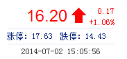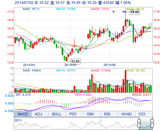 | 今 开: | 16.22 | 成交量: | 4.35万手 | 振 幅: | 3.87% |