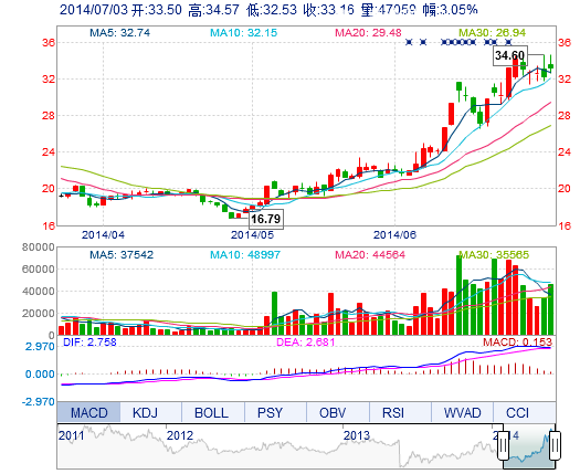 | 今 开: | 33.50 | 成交量: | 4.71万手 | 振 幅: | 6.34% |