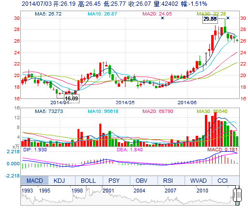 | 最 高: | 26.45 | 成交额: | 1.11亿元 | 换手率: | 2.44% |