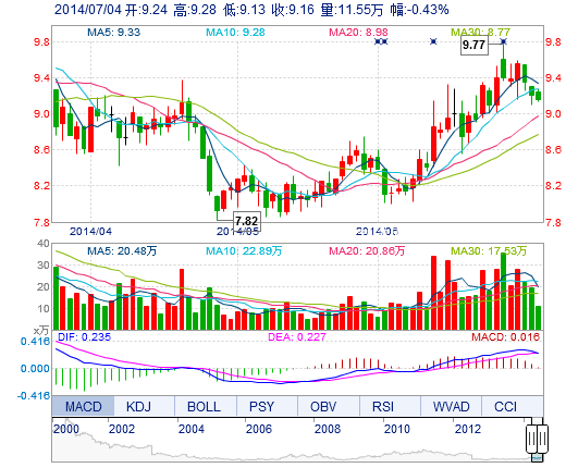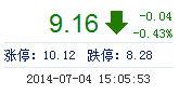 | 今 开: | 9.24 | 成交量: | 11.55万手 | 振 幅: | 1.63% |