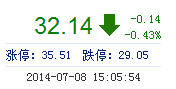| 今 开: | 32.75 | 成交量: | 1.84万手 | 振 幅: | 3.16% |