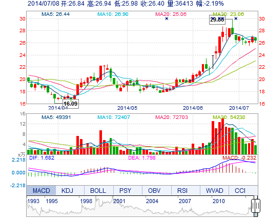 | 今 开: | 26.84 | 成交量: | 3.64万手 | 振 幅: | 3.56% |