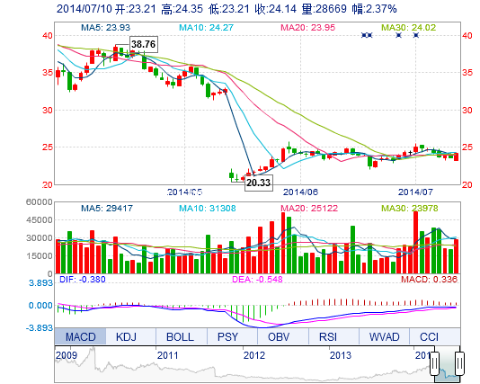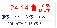 今开: 23.21 成交量: 2.87万手 振幅: 4.83% 最高: 24.35 成交额: 6880.79万元 换手率: 0.55% 最低: 23.21 总市值: 157.39亿 市净率: 6.00 昨收: 23.58 流通市...