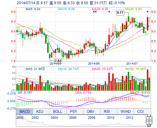 | 最 高: | 9.59 | 成交额: | 2.35亿元 | 换手率: | 2.79% |