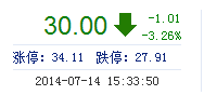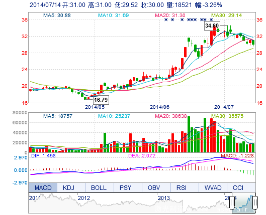 | 今 开: | 31.00 | 成交量: | 1.85万手 | 振 幅: | 4.77% |
