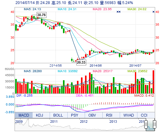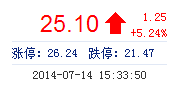 | 今 开: | 24.28 | 成交量: | 5.70万手 | 振 幅: | 4.15% |