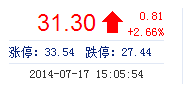 | 今 开: | 30.03 | 成交量: | 2.96万手 | 振 幅: | 7.25% |