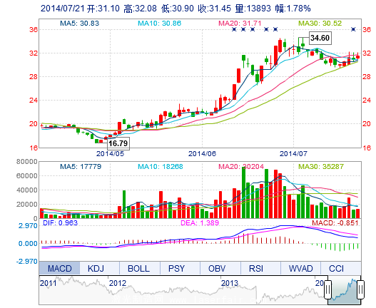 | 今 开: | 31.10 | 成交量: | 1.39万手 | 振 幅: | 3.82% |