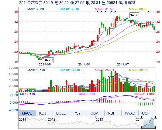 | 今 开: | 30.19 | 成交量: | 2.09万手 | 振 幅: | 8.68% |