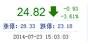 今开: 25.70 成交量: 2.48万手 振幅: 6.02% 最高: 25.75 成交额: 6162.51万元 换手率: 1.43% 最低: 24.20 总市值: 43.11亿 市净率: 12.46 昨收: 25.75 流通市...