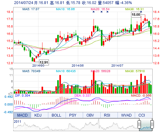| 最 高: | 16.81 | 成交额: | 8729.75万元 | 换手率: | 4.03% |