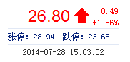 | 最 高: | 27.28 | 成交额: | 8925.26万元 | 换手率: | 1.92% |