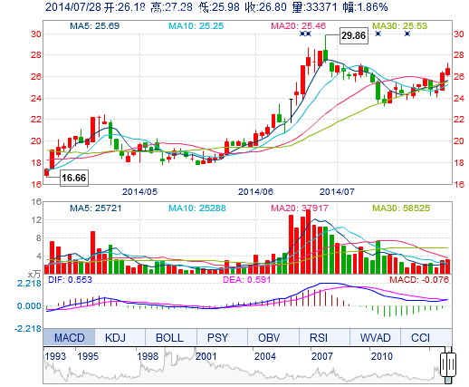 | 今 开: | 26.18 | 成交量: | 3.34万手 | 振 幅: | 4.94% |