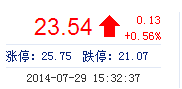 今开: 23.45 成交量: 2.52万手 振幅: 1.92% 最高: 23.75 成交额: 5939.09万元 换手率: 0.48% 最低: 23.30 总市值: 153.48亿 市净率: 5.85 昨收: 23.41 流通市...