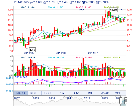 | 最 高: | 11.76 | 成交额: | 4683.95万元 | 换手率: | 2.03% |