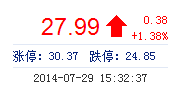 今开: 27.68 成交量: 15.15万手 振幅: 2.79% 最高: 28.19 成交额: 4.23亿元 换手率: 2.39% 最低: 27.42 总市值: 183.29亿 市净率: 5.01 昨收: 27.61 流通市值...