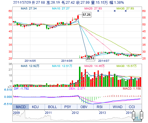 | 今 开: | 27.68 | 成交量: | 15.15万手 | 振 幅: | 2.79% |