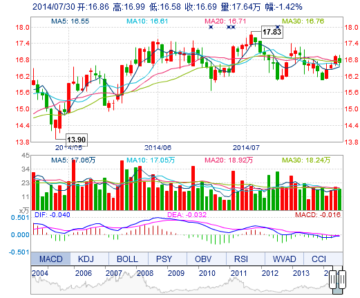 | 今 开: | 16.86 | 成交量: | 17.64万手 | 振 幅: | 2.42% |