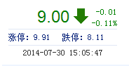 今开: 8.98 成交量: 12.10万手 振幅: 1.89% 最高: 9.07 成交额: 1.09亿元 换手率: 1.36% 最低: 8.90 总市值: 80.20亿 市净率: 3.00 昨收: 9.01 流通市值: 80...