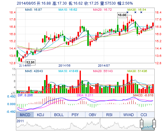 | 今 开: | 16.88 | 成交量: | 5.75万手 | 振 幅: | 4.04% |