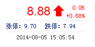 | 最 高: | 8.90 | 成交额: | 4544.70万元 | 换手率: | 1.88% |