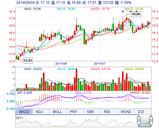 | 今 开: | 17.15 | 成交量: | 3.37万手 | 振 幅: | 1.62% |