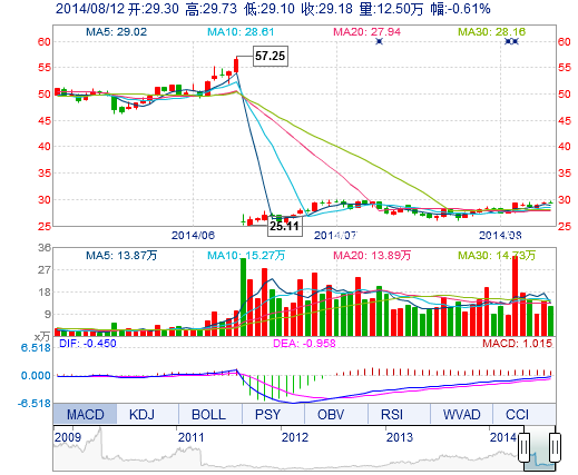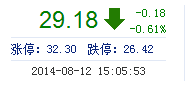 | 今 开: | 29.30 | 成交量: | 12.50万手 | 振 幅: | 2.15% |
