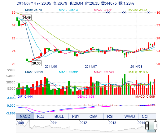 | 今 开: | 26.05 | 成交量: | 4.47万手 | 振 幅: | 2.88% |