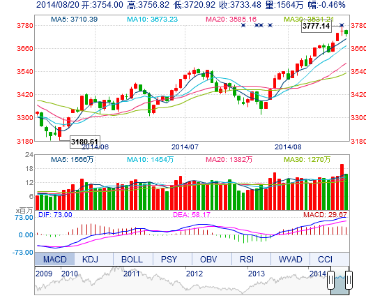 | 昨 收: | 3750.62 | 最 低: | 3720.92 |