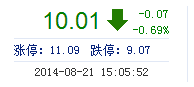 今开: 10.10 成交量: 30.49万手 振幅: 3.87% 最高: 10.17 成交额: 3.02亿元 换手率: 3.42% 最低: 9.78 总市值: 89.20亿 市净率: 3.33 昨收: 10.08 流通市值:...