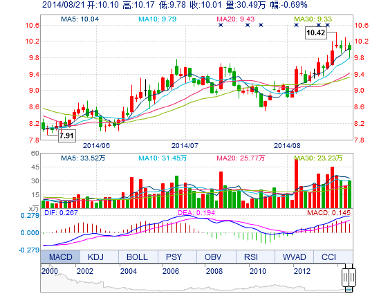 | 最 高: | 10.17 | 成交额: | 3.02亿元 | 换手率: | 3.42% |