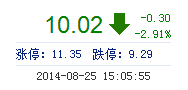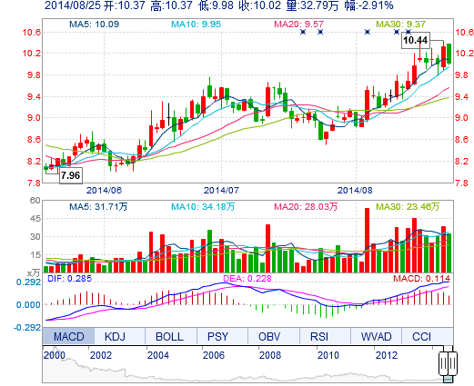 今开: 10.37 成交量: 32.79万手 振幅: 3.78% 最高: 10.37 成交额: 3.31亿元 换手率: 3.68% 最低: 9.98 总市值: 89.29亿 市净率: 3.30 昨收: 10.32 流通市值:...
