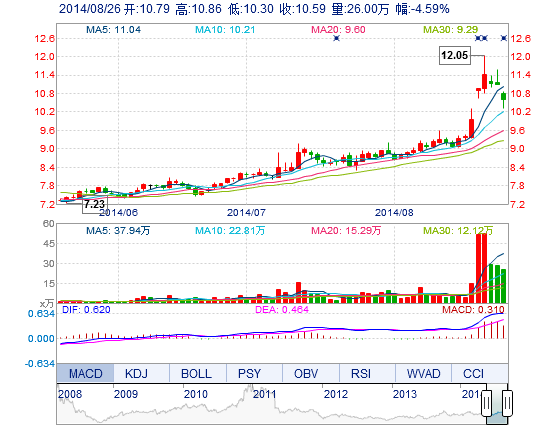| 最 高: | 10.86 | 成交额: | 2.76亿元 | 换手率: | 9.42% |