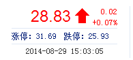 | 最 高: | 29.10 | 成交额: | 4635.91万元 | 换手率: | 0.93% |