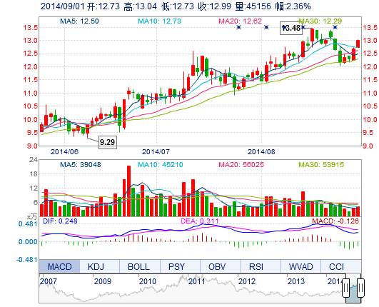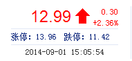 最 高: | 13.04 | 成交额: | 5821.46万元 | 换手率: | 2.27% |