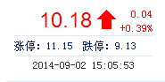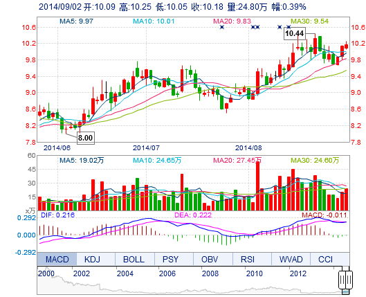 今开: 10.09 成交量: 24.80万手 振幅: 1.97% 最高: 10.25 成交额: 2.52亿元 换手率: 2.78% 最低: 10.05 总市值: 90.72亿 市净率: 3.36 昨收: 10.14 流通市值...