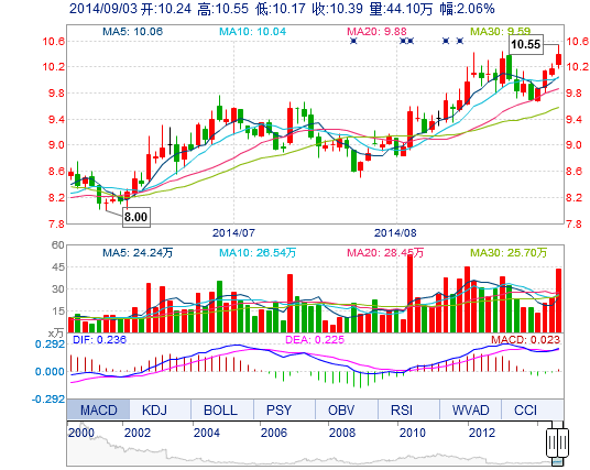 今开: 10.24 成交量: 44.10万手 振幅: 3.73% 最高: 10.55 成交额: 4.57亿元 换手率: 4.95% 最低: 10.17 总市值: 92.59亿 市净率: 3.43 昨收: 10.18 流通市值...