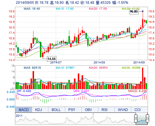 最 高: | 18.80 | 成交额: | 8409.75万元 | 换手率: | 3.38% |
