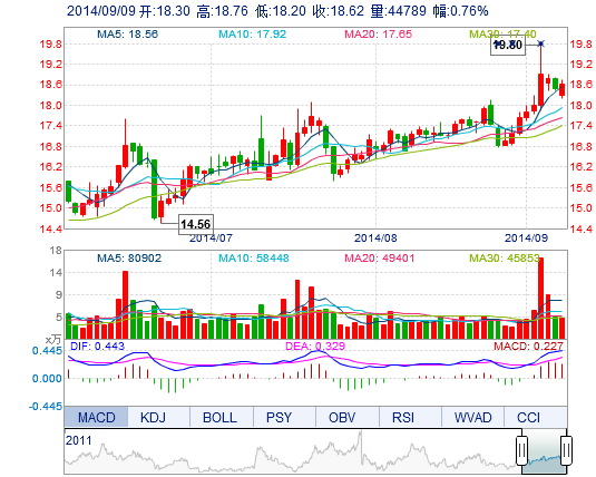 | 最 高: | 18.76 | 成交额: | 8295.75万元 | 换手率: | 3.34% |