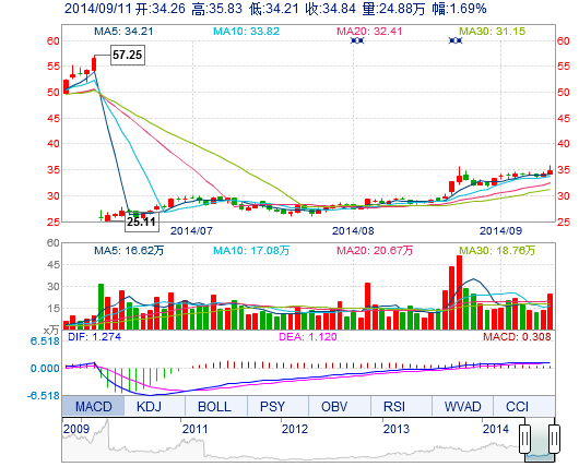 今开: 34.26 成交量: 24.88万手 振幅: 4.73% 最高: 35.83 成交额: 8.71亿元 换手率: 3.92% 最低: 34.21 总市值: 228.15亿 市净率: 13.42 昨收: 34.26 流通市...
