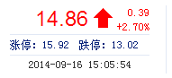 | 今 开: | 14.50 | 成交量: | 14.98万手 | 振 幅: | 8.64% |