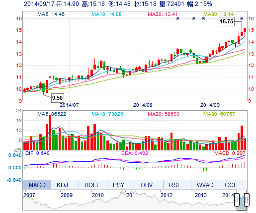 | 最 高: | 15.18 | 成交额: | 1.08亿元 | 换手率: | 3.64% |