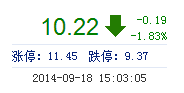 今开: 10.40 成交量: 12.43万手 振幅: 3.55% 最高: 10.49 成交额: 1.28亿元 换手率: 2.85% 最低: 10.12 总市值: 44.64亿 市净率: 3.17 昨收: 10.41 流通市值...