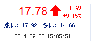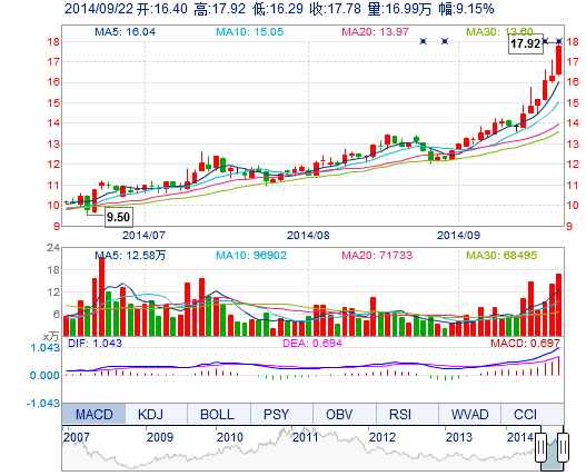 今开: 16.40 成交量: 16.99万手 振幅: 10.01% 最高: 17.92 成交额: 2.93亿元 换手率: 8.55% 最低: 16.29 总市值: 35.42亿 市净率: 7.09 昨收: 16.29 流通市值...