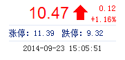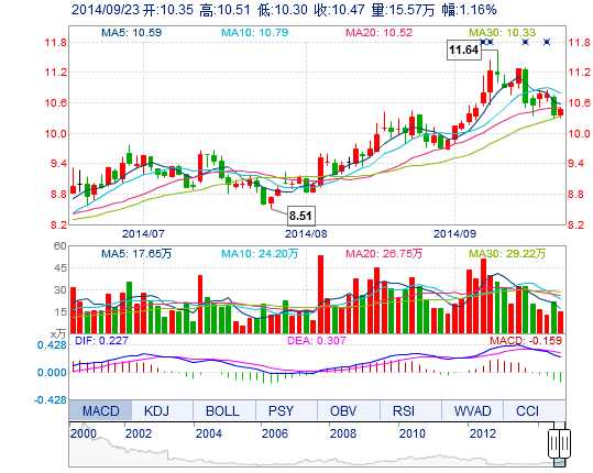 今开: 10.35 成交量: 15.57万手 振幅: 2.03% 最高: 10.51 成交额: 1.62亿元 换手率: 1.75% 最低: 10.30 总市值: 93.30亿 市净率: 3.45 昨收: 10.35 流通市值...