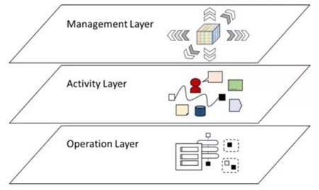 业务层是工厂车间的活动。人机具体执行的活动、机器加工流程。具体工位上的活动,都各不相同,这种多样性是通过业务层来进行定义。