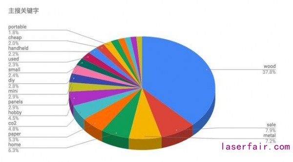 木材:雕刻、打标需求极大价格为采购参考因素之一:特价、二手产品应用领域:金属&纸类较多小机型搜索量大:迷你、桌面、便携和个人使用机型